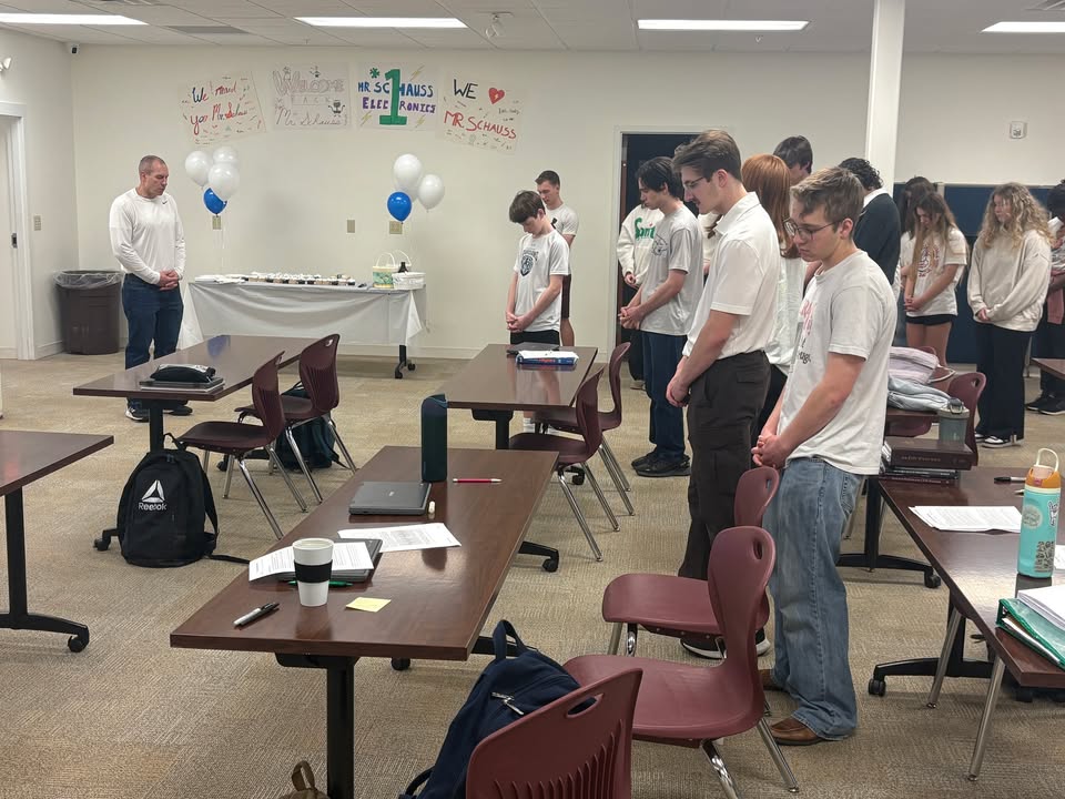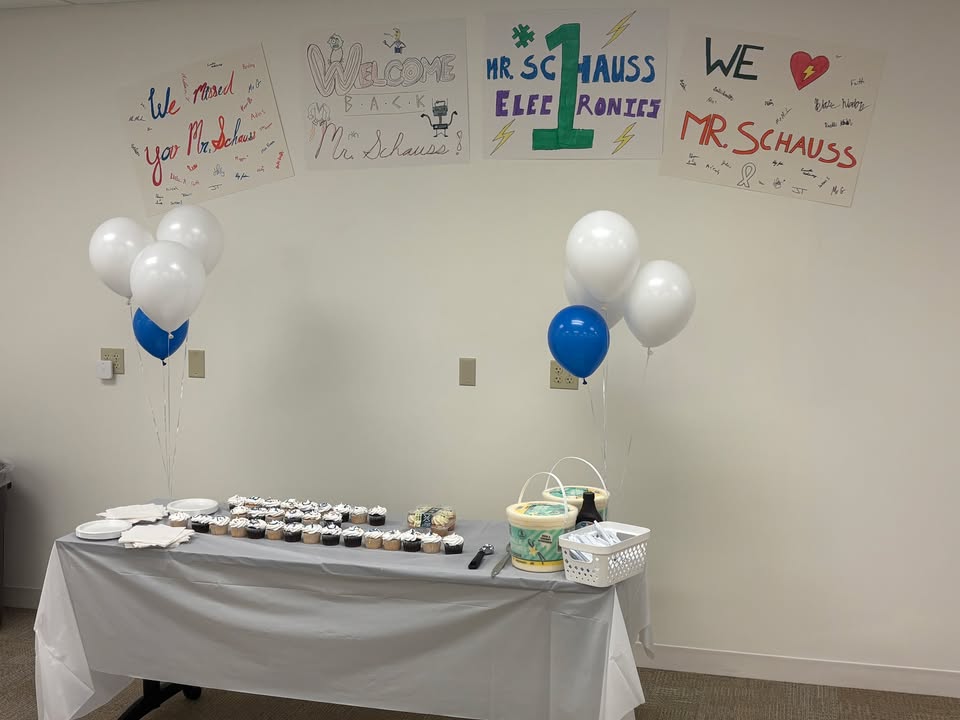 Today, our students showed their love and support for Mr. Schauss with a special “White Out.” Over the past few months, Mr. Schauss has been courageously battling lung cancer and has been away from the classroom. Today, we were blessed to welcome him back.…Read more.